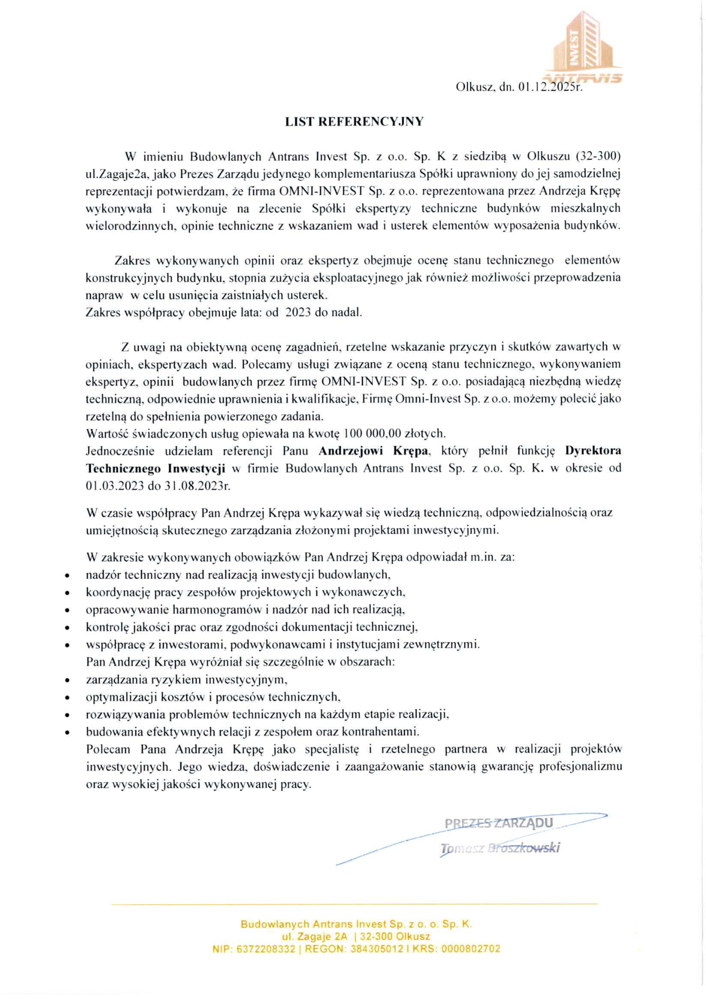 Wybierz zakres współpracy